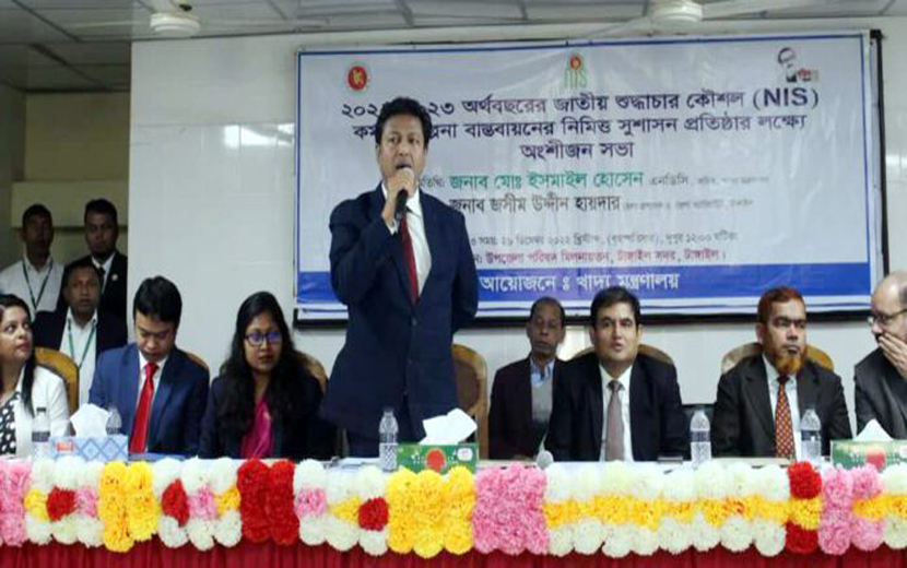 Continue Reading২৯ ডিসেম্বর খাদ্য মন্ত্রণালয়ের আয়োজনে ২০২২-২৩ অর্থ বছরের জাতীয় শুদ্ধাচার কৌশল কর্মপরিকল্পনা বাস্তবায়নের নিমিত্ত সুশাসন প্রতিষ্ঠার লক্ষ্যে অংশীজন সভা সদর উপজেলা পরিষদ মিলনায়তনে অনুষ্ঠিত হয়। অতিথি হিসেবে উপস্থিত ছিলেন গণপ্রজাতন্ত্রী বাংলাদেশ সরকারের খাদ্য সচিব মো: ইসমাইল হোসেন এনডিসি, টাঙ্গাইল জেলার জেলা প্রশাসক জসীম উদ্দীন হায়দার প্রমুখ। 4 Views